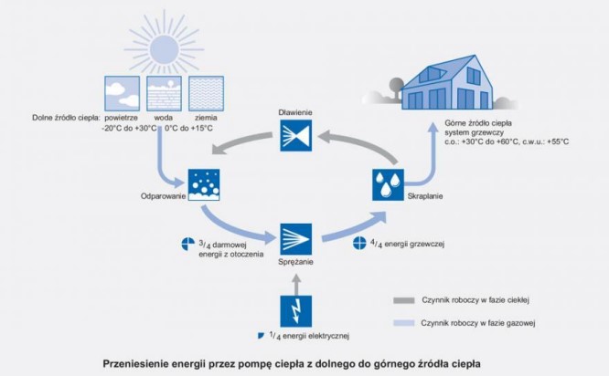 Za poprawne działanie pompy ciepła i pobieranie energii cieplnej z dolnego źródła w minusowej temperaturze odpowiedzialny jest układ chłodniczy wyposażony w sprężarkę. Najefektywniejszym źródłem jest energia z wód gruntowych, ponieważ mają one wysoką temperaturę bez względu na porę roku. Niestety, nie jest to najpowszechniejsze rozwiązanie na rynku. Wynika to z problemów dostępności do wody i kosztów samej instalacji.